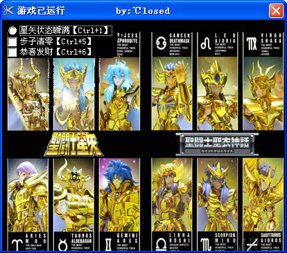圣斗士黃金十二宮修改器 下載 圣斗士黃金十二宮是國人根據(jù)圣斗士改編的rpg游戲,游戲情節(jié)和攻擊招數(shù)的名字都來自于動漫,本修改器可以修改游戲中的三項作弊功能
