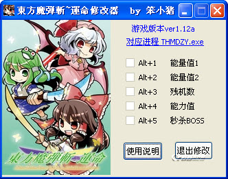 東方魔弾斬-運(yùn)命修改器 v1.12a 東方魔弾斬-運(yùn)命修改器是同人游戲《東方魔弾斬-運(yùn)命》的輔助工具,由游戲愛好者開發(fā),貼合普通玩家的需求哦!
