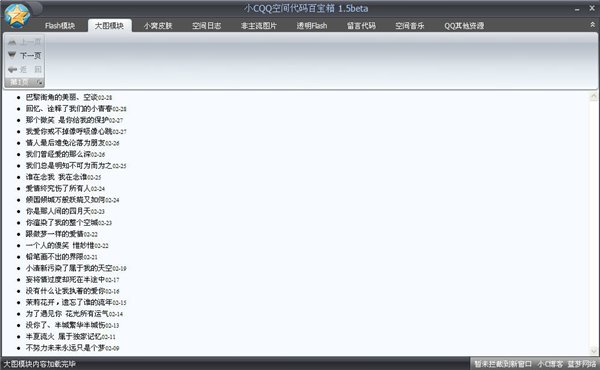 QQ空間代碼百寶箱是qq空間代碼大全免費(fèi)版軟件,主要用來獲取QQ空間中的部分代碼、圖片、Flash素材,并不能代替QQ空間黃鉆貴族等特權(quán);