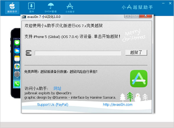 1.打開小A越獄助手自動彈出evasi0n7工具