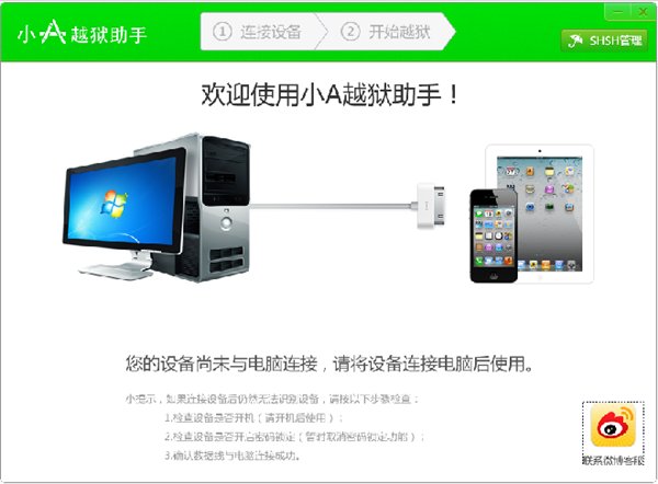 打開小A越獄助手,連接設(shè)備