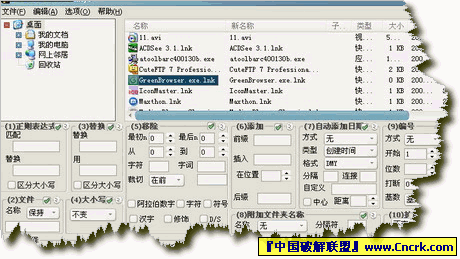 最好的文件更名工具!完全免費,界面友好,共分為12項操作內(nèi)容。你可以批量給文件或文件夾(選擇“遞歸”時包含子文件夾)重命名,隨時更名隨時預(yù)覽。你可以批量給文件或文件夾名稱添加前綴或后綴,添加日期,自動編號,批量刪除指定字符,批量插入指定字符到文件名中的指定位置,批量替換指定字符,批量刪除數(shù)字、漢字等...更難能可貴的是,它還支持文件擴展名的批量更改,保存更名后的文件到新的位置??傊辛?nbsp; Bulk Rename Utility,你會發(fā)覺給文件或文件夾更名變得前所未有的輕松!