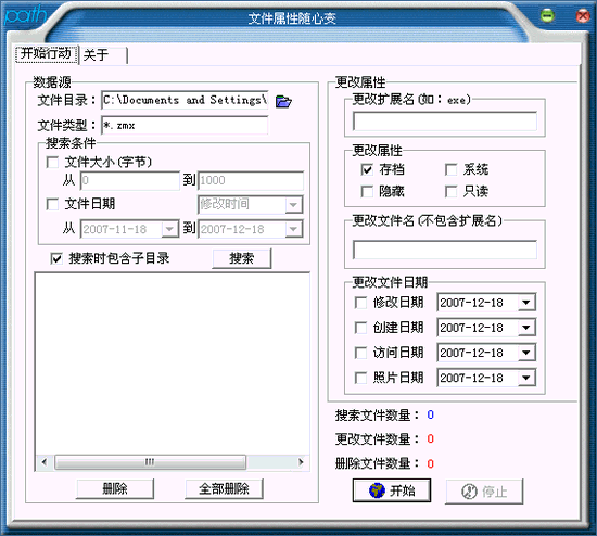先搜索需要更改屬性的某一類型文件,然后修改相應(yīng)的更改參數(shù)就可以批量修改了,也可以直接進(jìn)行刪除操作。