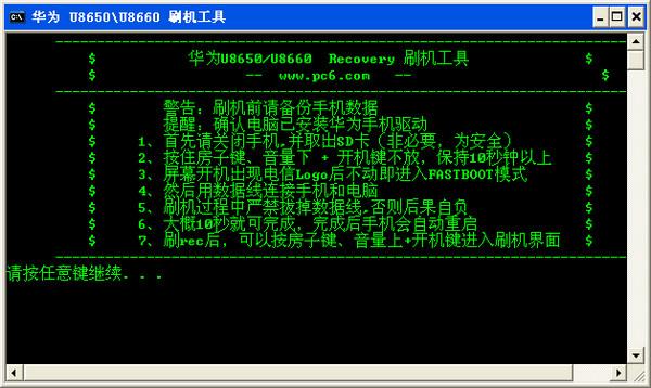 5. 運(yùn)行第一步解壓縮后的文件夾里面的 “雙擊刷入Recovery.bat”, 開始刷Recovery,大概10秒左右就刷完了。