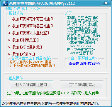 殺神奧拉星輔助,奧拉星修改器,這個可以刷星幣,也是一款奧拉星刷幣外掛。修改奧拉星星幣和晶幣,修改龍珠大師血量。另外還具有具有自動秒怪、自動刷級、自動刷學習力、智能獲取對戰(zhàn)數(shù)據(jù)、內有隱藏功能[自己找]、刷A速度戰(zhàn)術卡、刷亞比蛋、一鍵搖搖樹等功能。你們自己找隱藏功能吧
