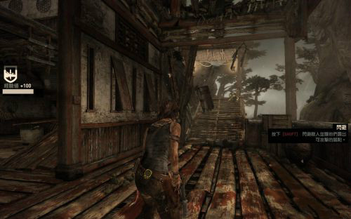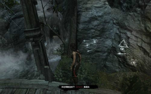 穿過縫隙以后勞拉可以按Q啟動生存本能,尋找求生的途徑.