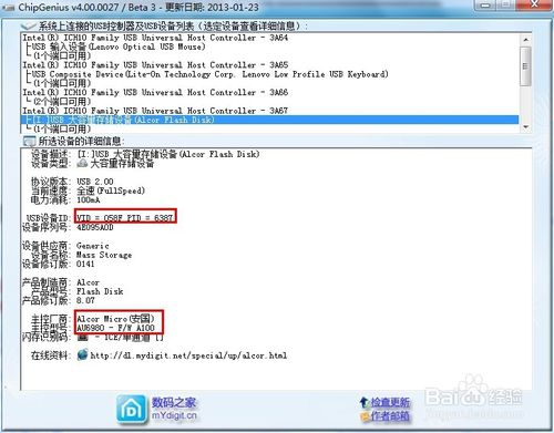 1.U盤(pán)主控型號(hào)的獲?。?br />由于不同型號(hào)的U盤(pán)所對(duì)應(yīng)的量產(chǎn)工具也不一樣,因此如果想使用量產(chǎn)工具,就必須獲取U盤(pán)的主控芯片型號(hào),即PID和VID型號(hào)。