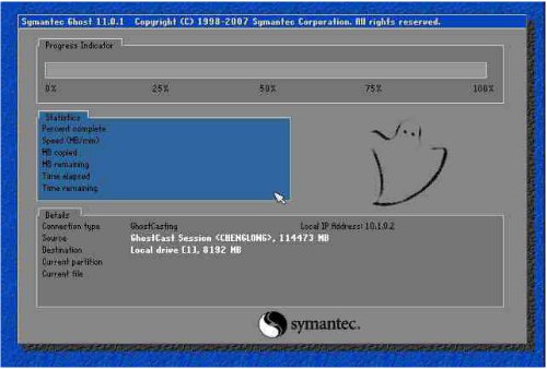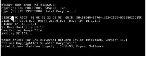 片刻后工作站從服務(wù)器上獲取IP地址出現(xiàn),并下載所需文件,等待服務(wù)器傳輸ghost文件。
