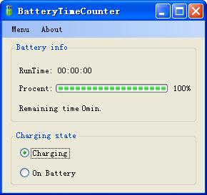 您的位置:起點(diǎn)軟件下載電腦軟件系統(tǒng)軟件筆記本電腦電池監(jiān)控(BatteryTimeCounter) 1.0 綠色版