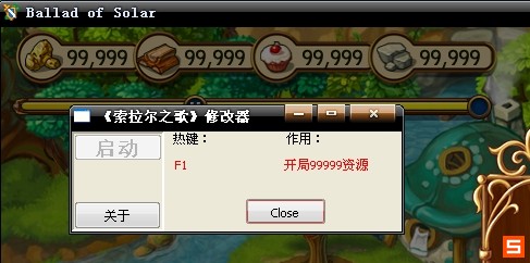 索拉爾之歌是一款畫面卡通而唯美的休閑游戲,修改器支持單項資源屬性修改 索拉爾之歌修改器功能介紹 F1 開局99999資源