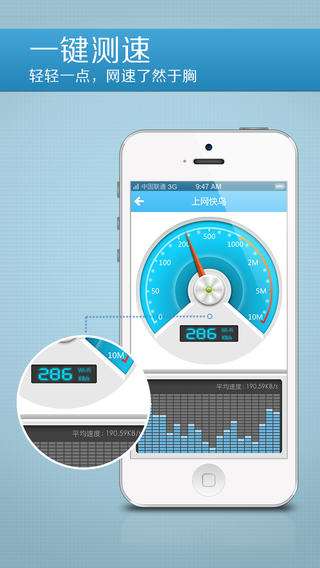 1.簡答明了,一鍵傻瓜式測速,對網速做到心里有數(shù)。2.界面簡潔、時尚。多款精美皮膚,隨意更換。