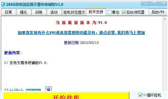 265G天尊傳奇輔助是一款游戲《天尊傳奇》的輔助工具,該輔助完全模擬按鍵操作,不修改任何游戲數(shù)據(jù)和封包,并非外掛,各位用戶(hù)可以永久免費(fèi)使用。