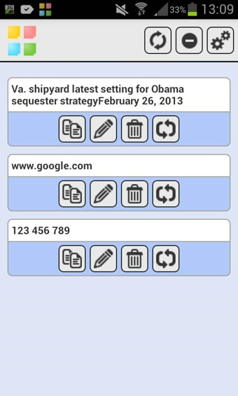 你曾經(jīng)有多少次你需要的東西復(fù)制,然後將復(fù)制的錯(cuò)誤,失去了第一個(gè)永久嗎?要選擇多個(gè)事物之間進(jìn)行復(fù)制一次的機(jī)會(huì)嗎?好了,我們已經(jīng)為您正確的應(yīng)用程序。事實(shí)上,第一次在店里,你可以將所有你想要的文字,而不用擔(dān)心失去他們,因?yàn)樗麄儗⒈槐4媪怂小.?dāng)你想要粘貼的東西,剛進(jìn)入室內(nèi)的多復(fù)制粘貼(感謝的方便和直接的圖標(biāo)在通知中),并選擇你想要粘合在一起至今已復(fù)制!但更重要的是,每一個(gè)復(fù)制的項(xiàng)目可以進(jìn)行編輯,刪除,或通過社交網(wǎng)絡(luò)或通過電子郵件與朋友共享!