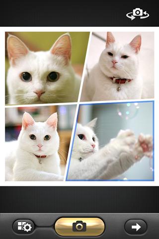 1.同時(shí)拍攝2-6張照片。2.支持照片分享到各個(gè)主流sns網(wǎng)站。