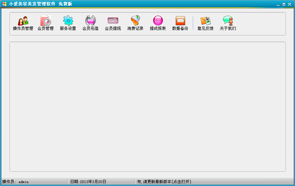 小愛美容美發(fā)管理軟件 1.0 安裝版 小愛美容美發(fā)管理軟件是為美容、美發(fā)行業(yè)度身定做的專業(yè)美容美發(fā)管理系統(tǒng),可以提供前臺收銀、會員管理、充值卡/消費卡、服務項目、產(chǎn)品銷售、員工提成等服務,歡迎下載體驗。