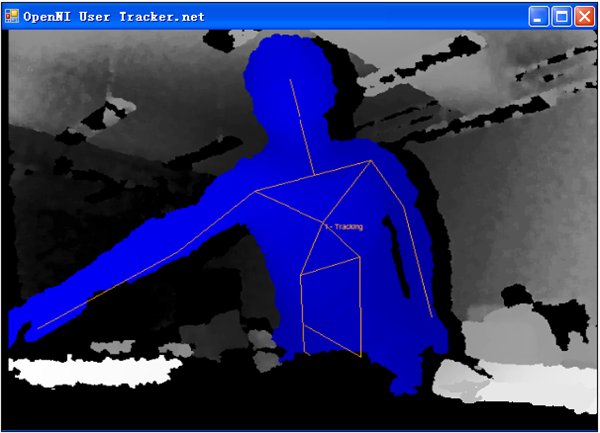 如果上面的步驟都完成,那么可以打開openNI安裝目錄下的samples子目錄,進(jìn)入bin目錄下的debug或者release,連接好kinect,雙擊其中的一個(gè)sample,看能否運(yùn)行,我這里是雙擊的UserTracker.net.exe,為人體骨骼提取,圖像為深度。