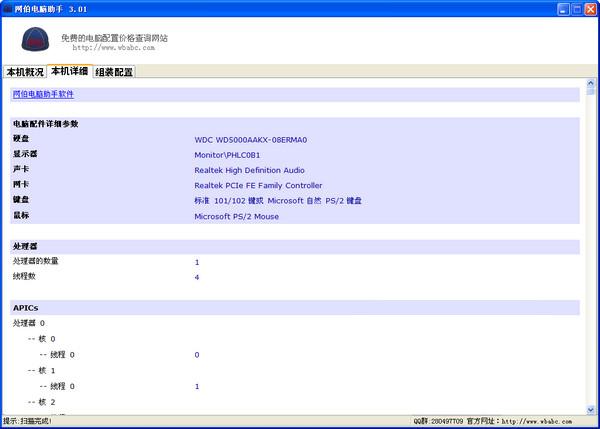 網(wǎng)伯電腦助手可自動(dòng)查出電腦配置及二手估價(jià)和全新價(jià)格,包括有:CPU,內(nèi)存,硬盤,主板,顯示器,光驅(qū)的行情價(jià)格以及完整的電腦組裝DIY配置報(bào)價(jià)。打算換新電腦但是又不知道買配哪種配置好的話這個(gè)軟件就可以幫到你啦。