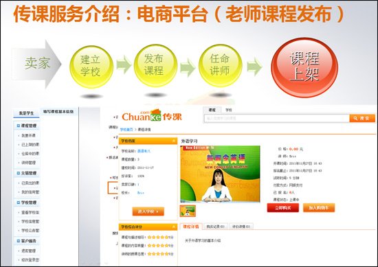 課程發(fā)布、課程交易、在線教學(xué)一站完成,網(wǎng)絡(luò)教學(xué)從未如此簡單。