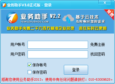 業(yè)務(wù)助手企業(yè)搜索軟件是一款專業(yè)針對企業(yè)開拓市場和業(yè)務(wù)員資料查詢的云軟件。擁有業(yè)務(wù)助手即刻擁有3000萬客戶聯(lián)系方式,公司名稱,姓名,稱呼,職務(wù),電話,移動電話,傳真,地址,郵編,法定代表人或負責(zé)人,電子郵件,公司主頁,公司介紹,主營產(chǎn)品或服務(wù),主營業(yè),企業(yè)類型,經(jīng)營模式,注冊資本,公司注冊地,員工人數(shù),成立時間,主要客戶,主要經(jīng)營地點。業(yè)務(wù)助手是是企業(yè)開拓市場和業(yè)務(wù)員做業(yè)務(wù)的必備利器。