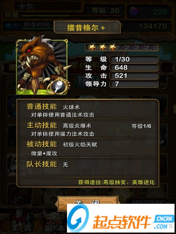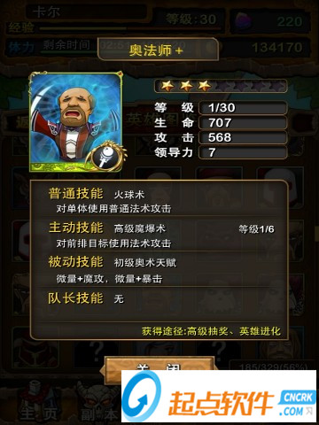主動(dòng)技能:火焰新星,對(duì)后排目標(biāo)使用法術(shù)攻擊;
