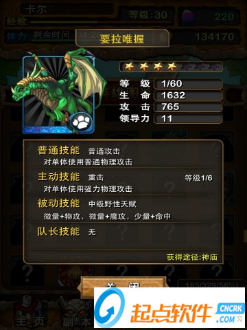 2、體力:參加任何副本所需的數(shù)值,目前普通副本為6,精英副本為12,活動(dòng)副本為15、20、30、50不等。升級(jí)會(huì)得到等級(jí)數(shù)值+10的體力,服務(wù)維護(hù)后等級(jí)不滿(目前維護(hù)時(shí)間為上午10-11點(diǎn))。
