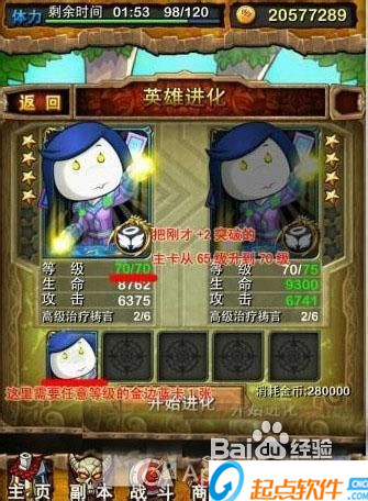 2、英雄進(jìn)化:即提升自己的英雄品質(zhì),更高的品質(zhì)也就意味著有著更好的成長(zhǎng),能夠達(dá)到更強(qiáng)的水平。不過(guò)整個(gè)星級(jí)進(jìn)化的時(shí)候,等級(jí)會(huì)清零,這點(diǎn)需要注意。同時(shí),進(jìn)化的時(shí)候還需要不同的套裝,套裝需要在常規(guī)副本或者精英副本中刷出。這也是進(jìn)化最“難”的一個(gè)環(huán)節(jié)。