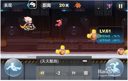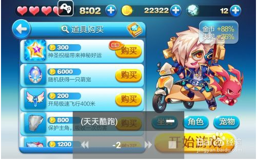 3,進(jìn)入游戲,買道具游戲開(kāi)始沖刺400米(200金幣)或者神圣的祝福抽中的加速(300金幣),這個(gè)時(shí)候點(diǎn)燒餅游戲大師的圖標(biāo),點(diǎn)時(shí)光穿梭機(jī)。這個(gè)不調(diào)加速就是把加速頁(yè)面調(diào)出來(lái)備用