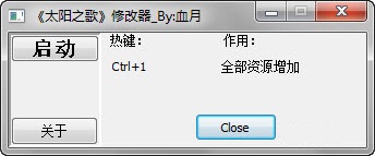 太陽(yáng)之歌修改器是同名小游戲的輔助工具,功能簡(jiǎn)單,為玩家爆機(jī)節(jié)省時(shí)間! 功能:ctrl+1 全部資源增加