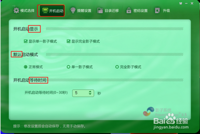提醒設(shè)置:可以設(shè)置進入后在什么地方提醒,避免保存數(shù)據(jù)時忘記了在影子系統(tǒng)下操作。