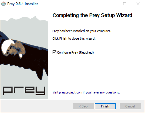1.在將Prey官方版下載到電腦里后,執(zhí)行安裝程式,與一般軟體安裝步驟差不多。2.在安裝完成后,會出現(xiàn)”Configure Prey Settings”提示,勾選后按下結(jié)束,就能夠進行初始設(shè)定。