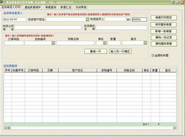 易達送貨單打印專業(yè)版:用于企業(yè)送貨單發(fā)貨單打印,具有自動記憶收貨單位名稱,地址,收貨人功能,小寫金額自動轉(zhuǎn)大寫,打印模板自定義(包手打印行數(shù)自定義),實現(xiàn)連續(xù)打印,套打功能。