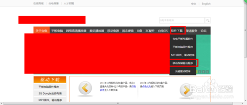 2.這樣,我們進(jìn)入臺(tái)電官網(wǎng),選“軟件下載”這欄,再選“移動(dòng)存儲(chǔ)驅(qū)動(dòng)程序”,進(jìn)入