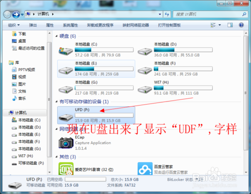 8.現(xiàn)在在電腦顯示是這樣的,U盤的名字給改成“UFD”,后面的就是希望自己里面的資料可以經(jīng)過軟件恢復(fù)了。