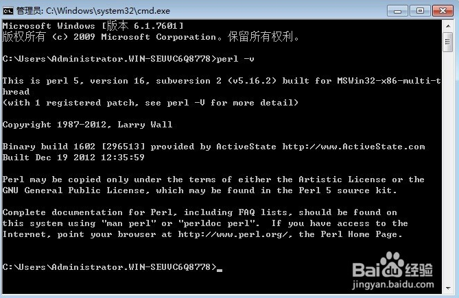 此外在命令提示符輸入perl -v你可以查看自己的ActivePerl的版本?,F(xiàn)在已經(jīng)到了5.12了