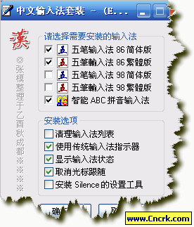 5、“清理輸入法”選項(xiàng),將刪除本套裝以外的輸入法,如無(wú)需要請(qǐng)勿選擇。