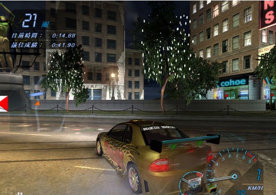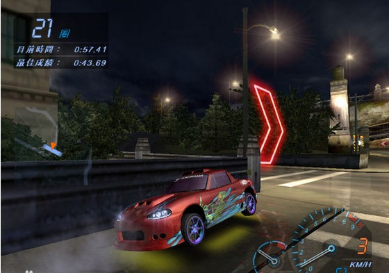 注:起步時賽車可能會左右搖晃,不要管它,它會自動修正。在躲避過路車時只要輕點方向即可換道。在開始時會經(jīng)過一座橋的那個賽道中,賽車過橋后會飛起一段時間,在賽車飛躍的過程中最好保持馬力在9左右,并且不要開N2O,否則輕則落地后速度慢,重則blown engine。