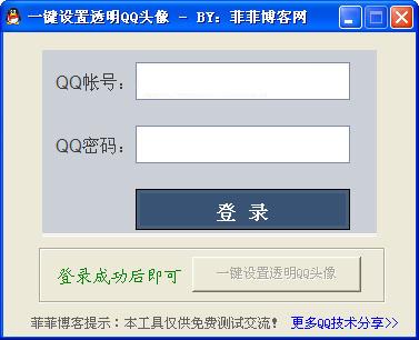 一款非常簡單的可以直接就設置QQ透明頭像的工具,不需要過多繁雜的操作,只需登陸要設置透明頭像的QQ后,點擊“一鍵設置透明QQ頭像”即可。