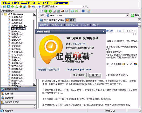 您的位置:起點(diǎn)軟件下載電腦軟件系統(tǒng)軟件POTU周博通資訊閱讀器 V4.0 綠色免費(fèi)版