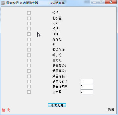 洞窟物語四項(xiàng)修改器,一款為同名游戲制作的作弊器,一共四個(gè)修改選項(xiàng),助你通過難關(guān)。