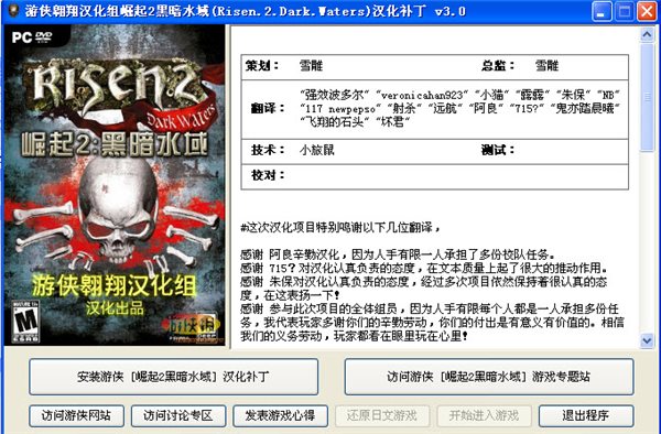 崛起2:黑暗水域游俠光榮區(qū)漢化補(bǔ)丁V3.0,一款為崛起2:黑暗水域制作的簡體中文漢化補(bǔ)丁,修正文本瑞色和校對(duì),方便國內(nèi)玩家游戲操作,提高玩家游戲體驗(yàn)。