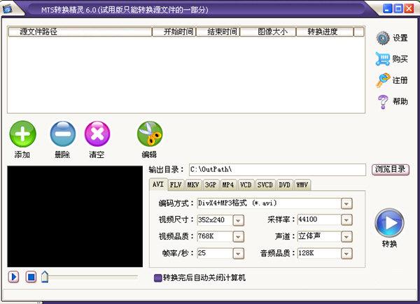 2、高清視頻格式轉(zhuǎn)換輸出 AVI/FLV/F4V/MKV/3GP/3G2/MP4/VCD/DVD/WMV/ASF 等格式
