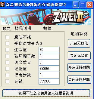 雙星物語(yǔ)2加強(qiáng)版修改器中文版與日文版修改器合集,功能強(qiáng)大,能修改生命 ,金錢,魔法不減等選項(xiàng),讓您輕松完成游戲