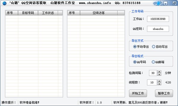 功能介紹:1、導入需要檢測的目標qq號碼,提取他們的訪客;
