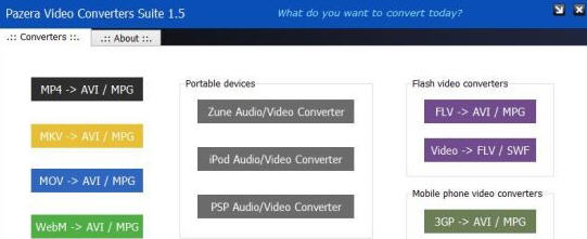 Pazera Video Converters Suite是便攜視頻轉(zhuǎn)換工具套裝,Pazera Video Converters Suite整合了多個免費的便攜版視頻轉(zhuǎn)換軟件