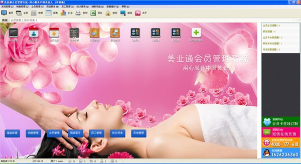 1、會(huì)員管理:會(huì)員檔案管理,客戶流失提醒,短信群發(fā),會(huì)員消費(fèi)信息統(tǒng)計(jì)等。