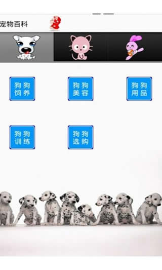 該應(yīng)用以寵物為素材,分為:狗狗、貓貓、其它寵物三大類。每種類別中分為飼養(yǎng)、美容、訓(xùn)練、選購等。