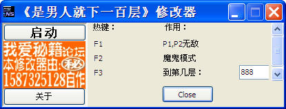 是男人就下一百層描述的是男人和他的女朋友下落到達底層的游戲,本修改器可以修改無敵,層數(shù),魔鬼模式