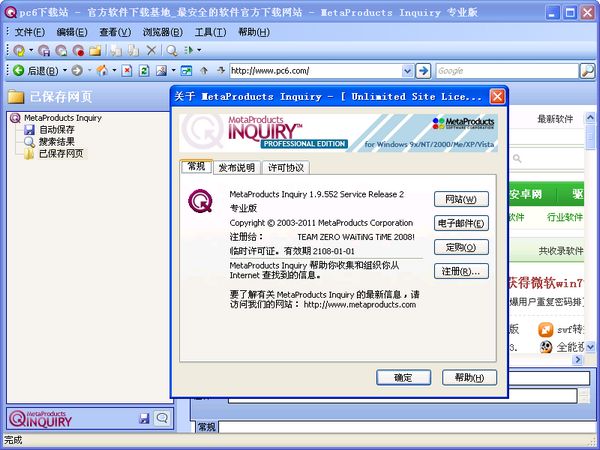 MetaProducts Inquiry (網(wǎng)頁快照軟件) v1.13.640 綠色漢化版 MetaProducts Inquiry 是一款網(wǎng)頁快照軟件,可以快速地收集,管理和查看網(wǎng)頁上的信息,支持IEMozilla, Netscape, FireFox and Opera 瀏覽器,也可單獨使用。可將收集的資料全部或部分導(dǎo)出為各種流行的電子書.