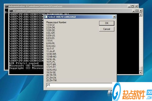 安裝語言選擇(選擇21是簡體中文)