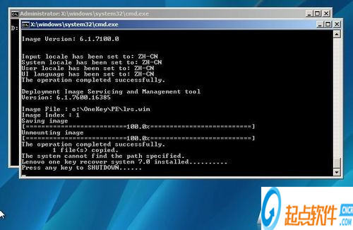 INF 100完成備份過程(完成后自動關(guān)機)這個時候你就擁有了一鍵恢復(fù)7.0的默認出廠備份了。下面我們就從新啟動一鍵恢復(fù)看看里面的內(nèi)容吧